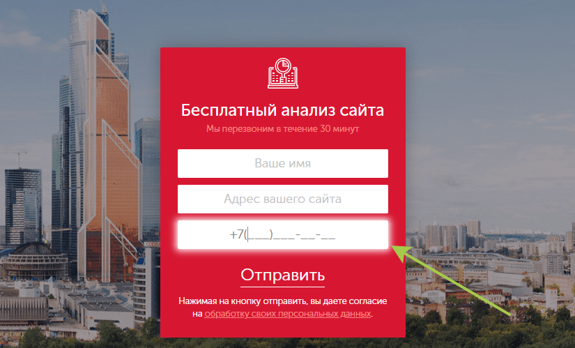 Також в прикладі видно, що у формі крім маски введення телефонного номера, присутні назви полів. Це дозволить максимально спростити завдання по відправці персональних та інших даних.
