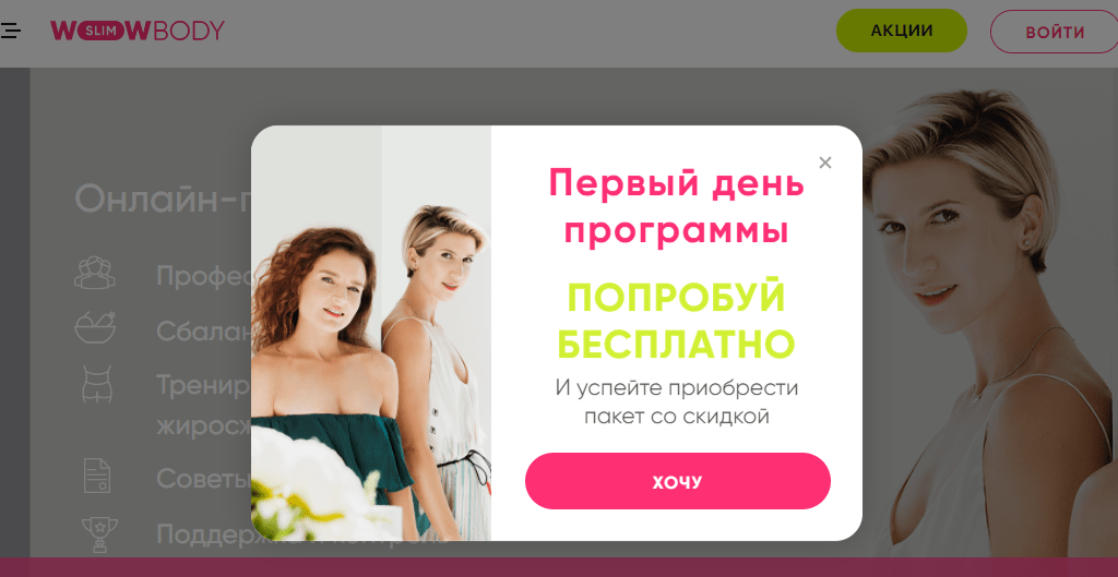 Нижче ви бачите лід-магніт з пропозицією безкоштовно спробувати день програми для схуднення WOWBODY slim.