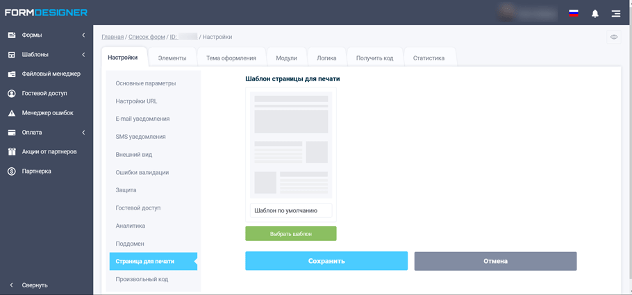 Для того, щоб створити шаблон, перейдіть в налаштування форми в розділ "Сторінка для друку":