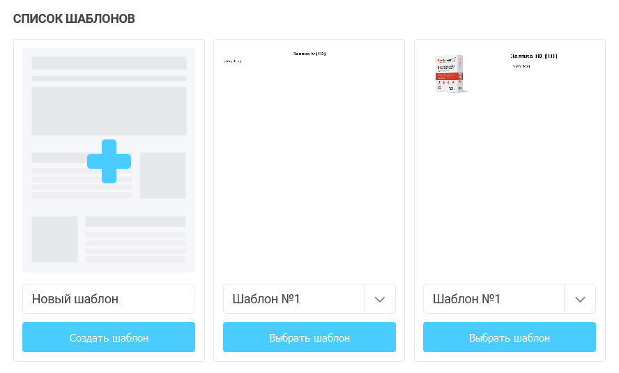 Для того, щоб вибрати потрібний шаблон, необхідно натиснути на кнопку "Вибрати шаблон". Для створення нового шаблону, необхідно натиснути на кнопку "Створити шаблон", після чого відкриється сторінка з вибором редактора шаблонів: