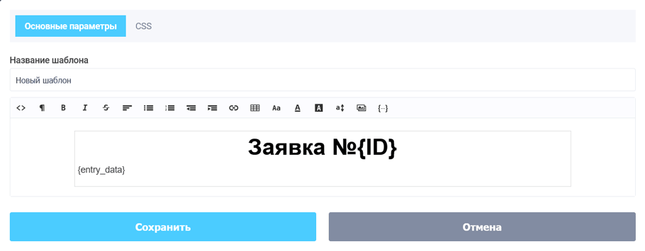 Як бачите це звичайний текстовий редактор з можливістю редагувати вихідний код шаблону. Крім цього, ми додали окрему вкладку "CSS", де можна вручну налаштувати якісь CSS правила.
