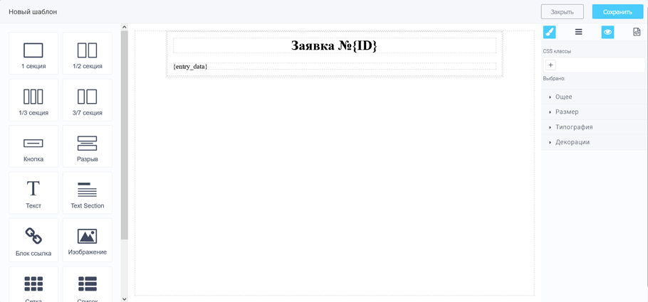 Це повноцінний блоковий редактор шаблонів сторінок. Тут ви можете додавати готові блоки, редагувати їх зовнішній вигляд, розміри, шрифти, відступи і т.д. даний редактор значно спрощує створення шаблону сторінки для виведення на друк і створення PDF документів.