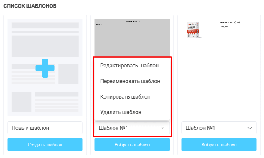 Всі шаблони можна копіювати, видаляти і перейменовувати. Для цього, в списку шаблонів, необхідно натиснути на назву шаблону: