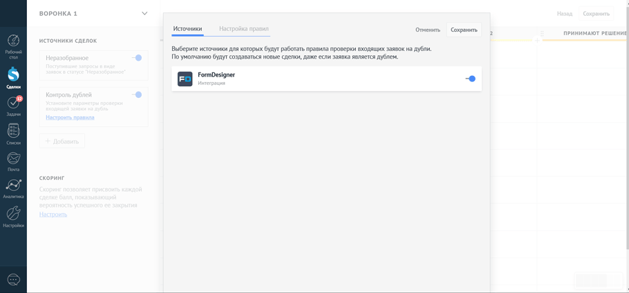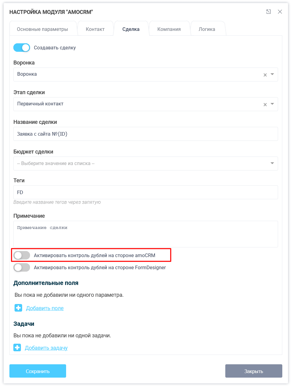 Увімкнувши цей перемикач, Ви зможете налаштувати контроль дублів на стороні амоСРМ: